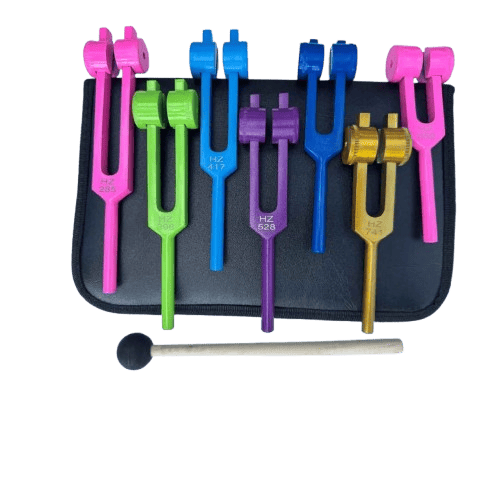 ✅ 9-piece Solfeggio tuning fork set – ideal for chakra and energy healing